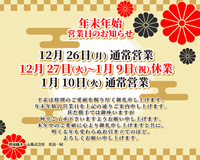 【増成織ネーム㈱東京営業本部が移転します】