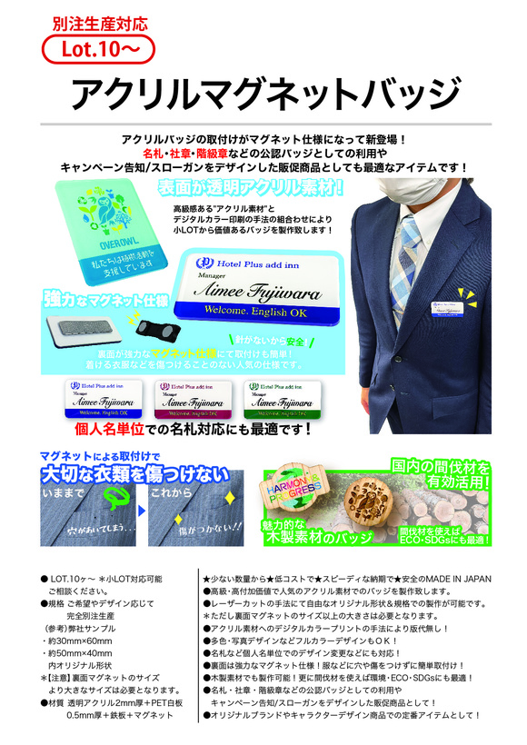 ★裏面パーツも安全ピン・蝶タイタックピン・マグネット他対応可能!