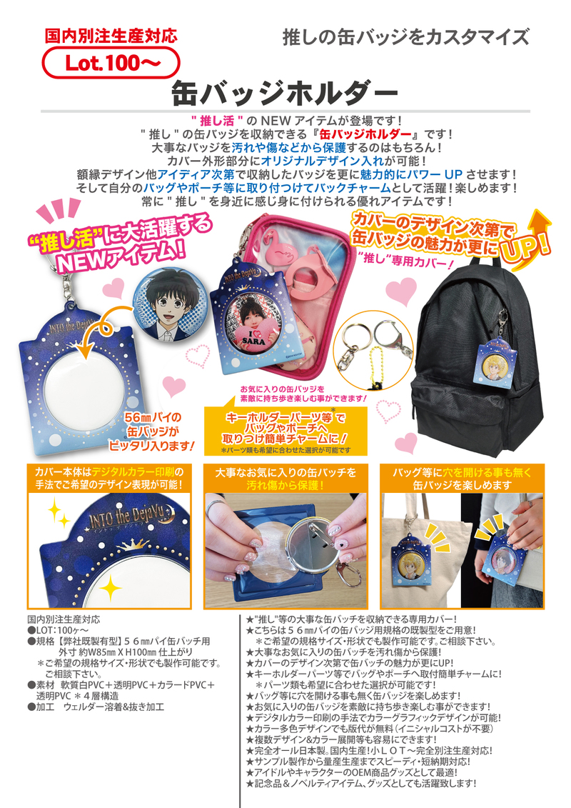 ★"推し"等の大事な缶バッチを収納できる専用カバー!