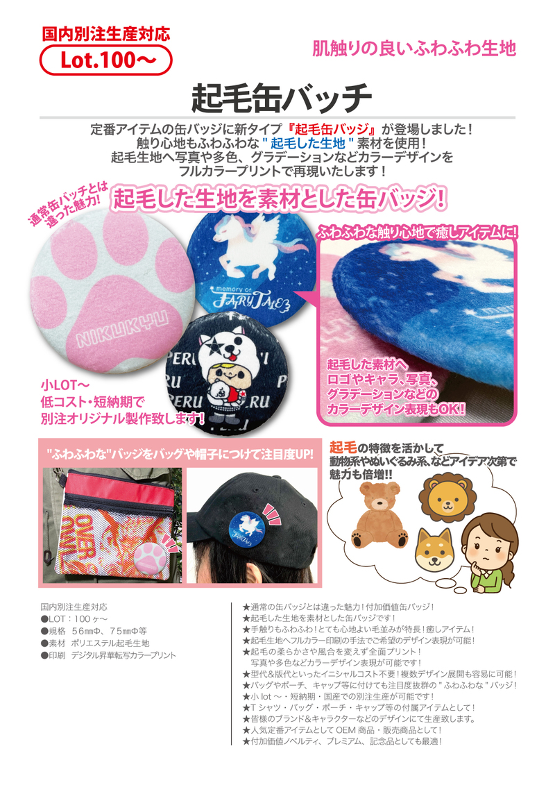 ★起毛した生地を素材とした缶バッジです!