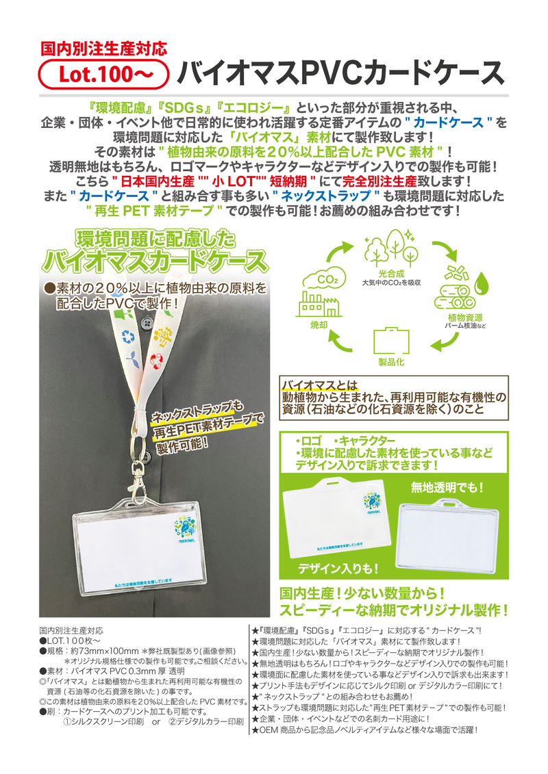 ★環境問題に対応した「バイオマス」素材にて製作致します!
