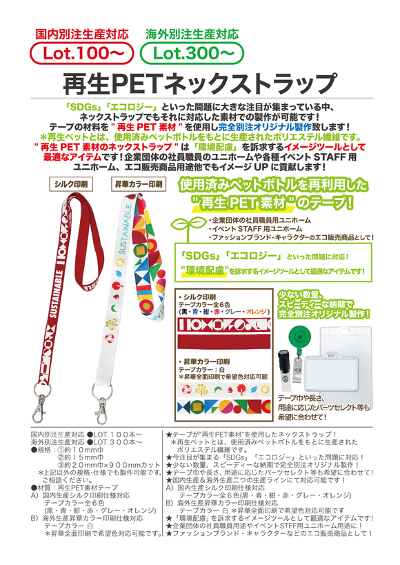 ★ストラップも環境問題に対応した"再生PET素材テープ"での製作も可能!
