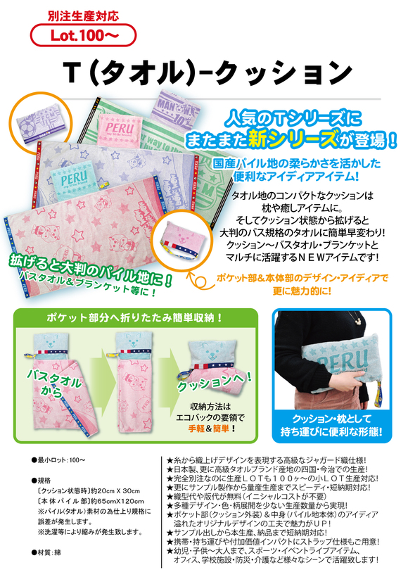 これまでも好評・大人気な「T-ブレス」「T-パーカー」「T-ポケット」に続く期待のNEW アイテム!それが『T(タオル)-トート』です。