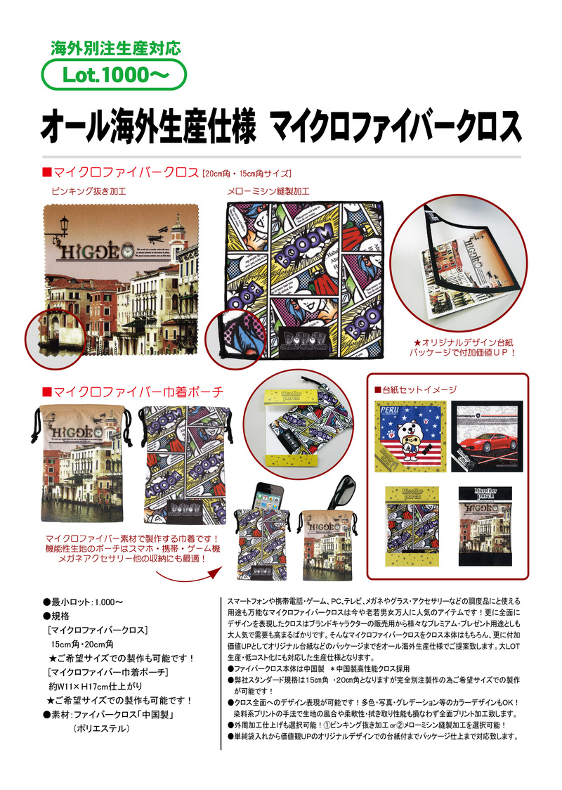 オール海外生産仕様 マイクロファイバークロス | マイクロファイバークロス | マイクロファイバー製品 | カテゴリ一覧|オリジナルグッズ、ノベルティのOEM、企画、製造、販促をプロデュース
