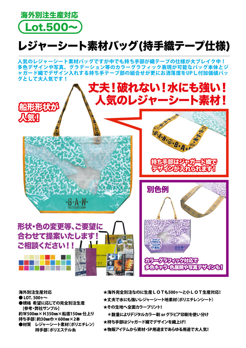 人気のレジャーシート素材バッグですが中でも持ち手部が織テープの仕様が
