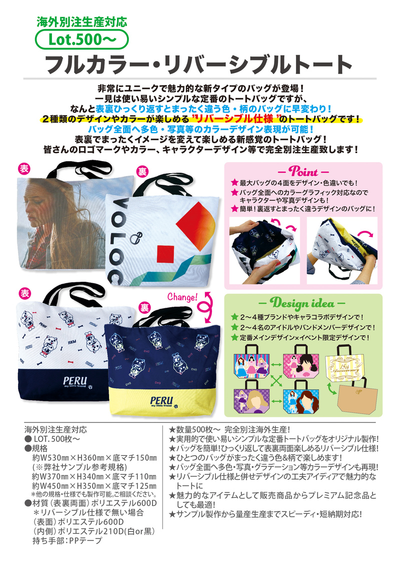 ★バッグを簡単!ひっくり返して表裏両面楽しめるリバーシブル仕様!