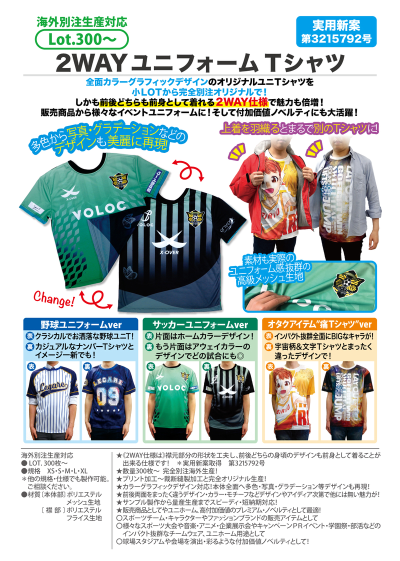 販売商品から様々なイベントユニホームに!そして付加価値ノベルティにも大活躍!