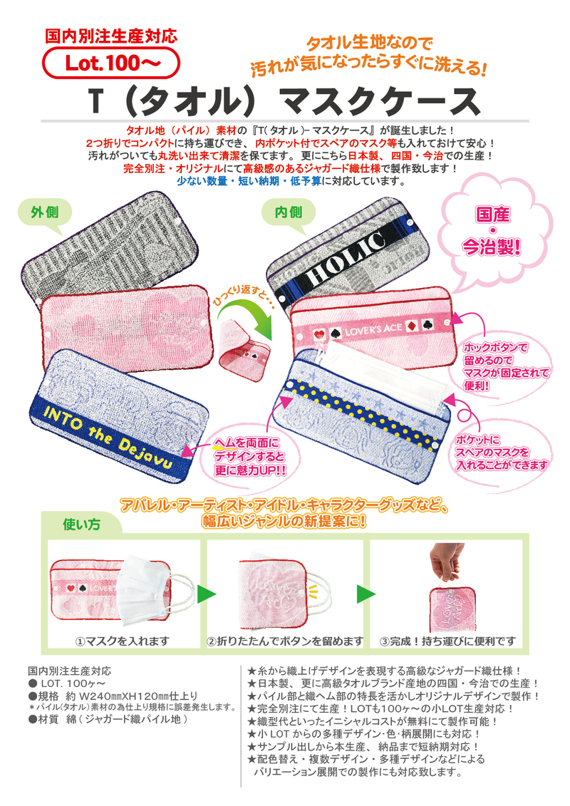 タオル地(パイル)素材の『T(タオル)-マスクケース』が誕生しました!