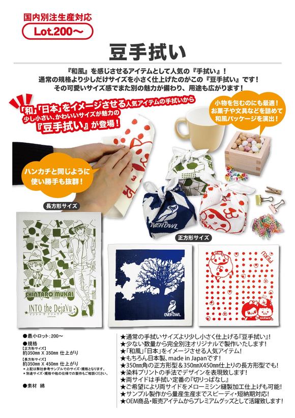「手ぬぐい」やその生地を使った「あずま袋」や「巾着」の製作承ります!『日本』を意識やイメージさせる『和』のテイストは今特に注目を集めています。国内では震災などの影響もああり「がんばろう、日本!」に代表される日本という国に対する意識、海外では日本文化やカルチャーは「COOL JAPAN」として益々人気を集めています。そんな中で『日本』や『和』をイメージさせる身近なアイテムの代表として『手ぬぐい』が人気です。またそんな『手ぬぐい』と同じ生地を使用して製作する『あずま袋』や『巾着袋』のような縫製小物品もまた『和風』・『日本』をイメージ出来る便利なアイテムです。