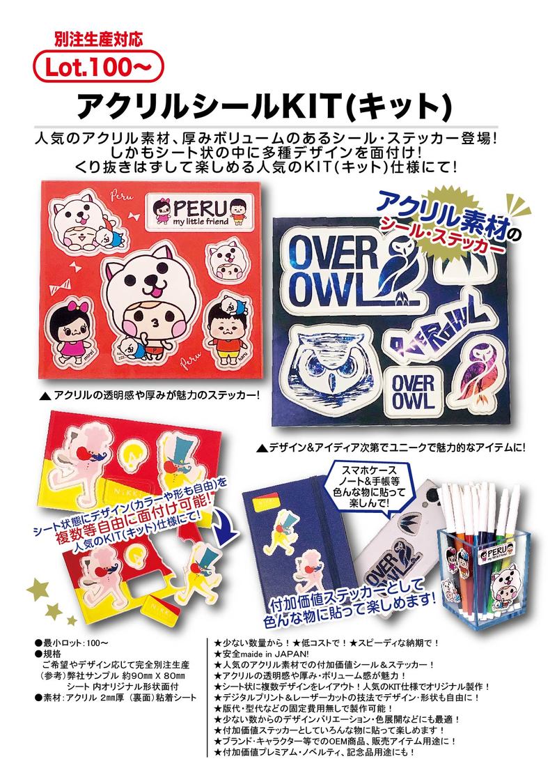 ★人気のアクリル素材での付加価値シール&ステッカー!