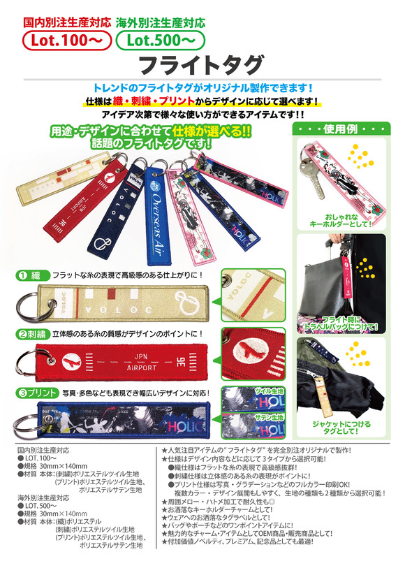 小物アイテムのチャームフライトタグのようにアウターファッションキーホルダー・チャームファッション・タグ風のストラップ・チャームリボンテープへデザイン入れ!