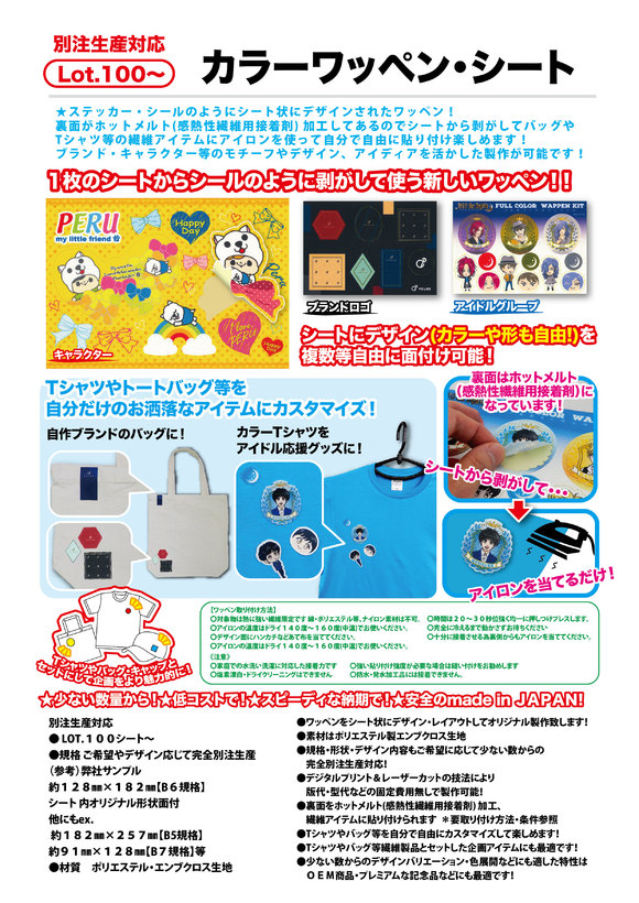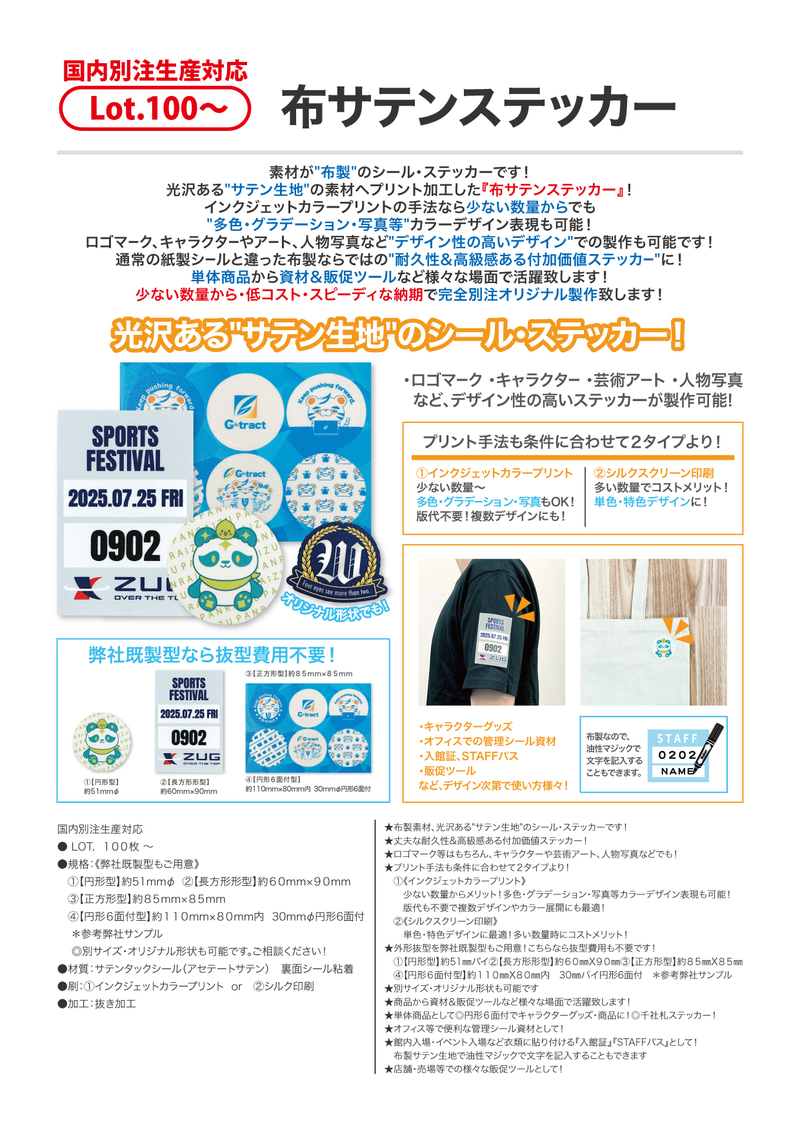 ★布製素材、光沢ある"サテン生地"のシール・ステッカーです!